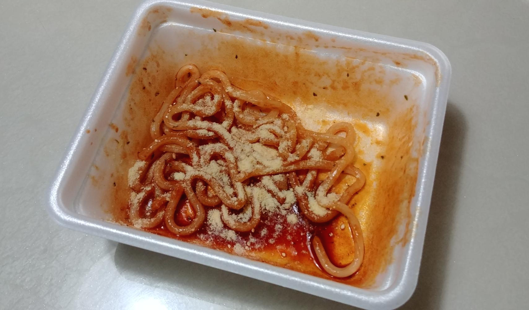 맛은 약간 불닭볶음면과 비슷하나, 불닭볶음면이 더 맛있는 것 같습니다. 설명하기가 어렵긴 하지만, 불닭볶음면과 비슷하다고 보시면 됩니다. 하지만 한 가지 매우 아쉬운 점이 있습니다. 제품 이름은 '노브랜드 화끈 "치즈"볶음면이지만, 치즈 맛이 거의 안 납니다. 말을 안 해주고 먹으면 치즈가 들어갔는지 전혀 모를 수도 있습니다. 그래서 먹다가 집에서 뒹굴고 있는 파마산 치즈가루를 조금 넣어서 먹어봤는데, 이제야 치즈맛이 조금 나기 시작했습니다.
