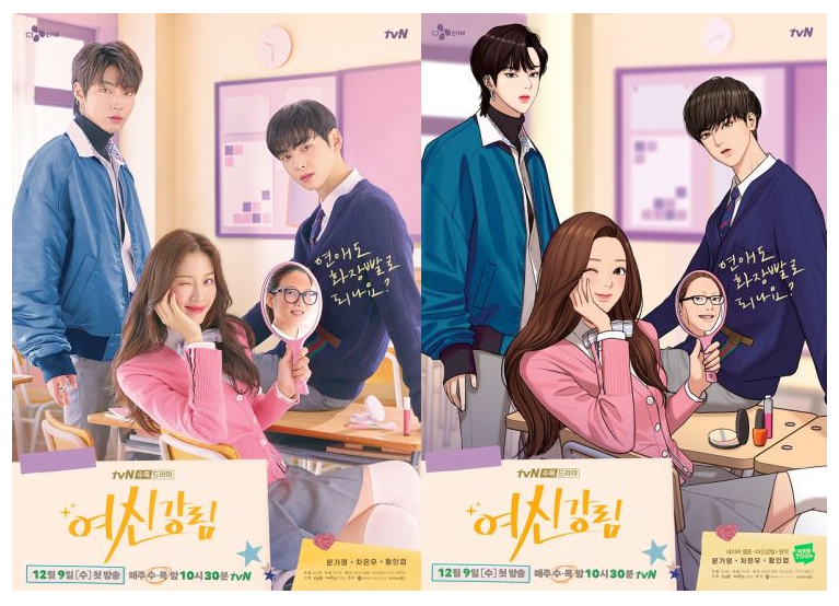 물론 저는 잘 모르지만, 엄청난 인기를 끌고 있는 여신강림이라는 웹툰도 드라마화되어 방영이 되고 있다고 합니다.