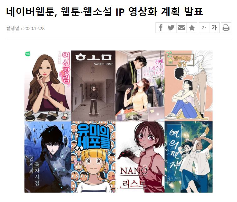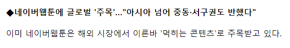 어쨌든 그만큼 네이버 웹툰이 가지고 있는 잠재력은 무궁무진하다고 생각합니다.