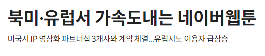 네이버 웹툰이 벌써 북미 쪽으로 진출을 한 것일까요?