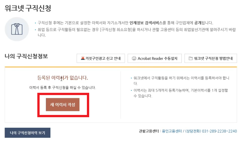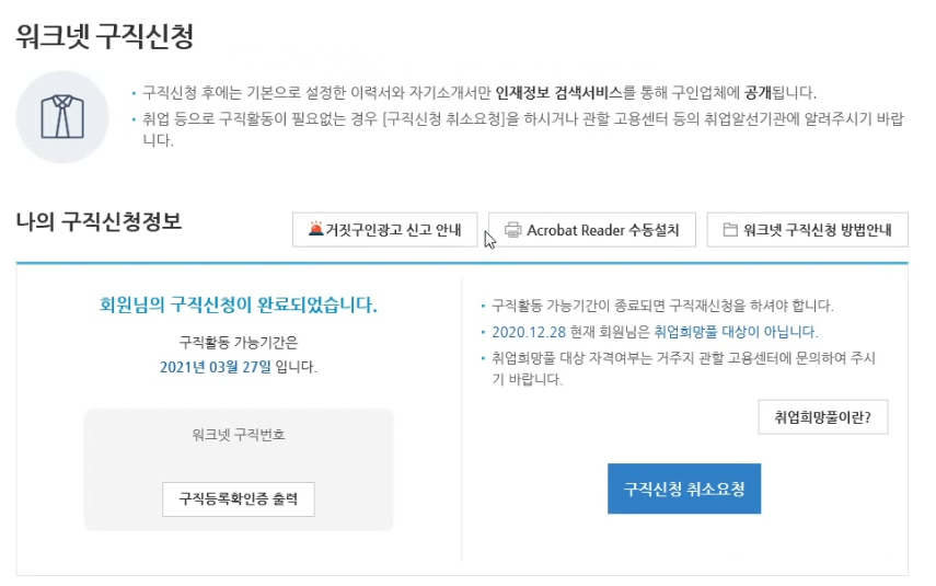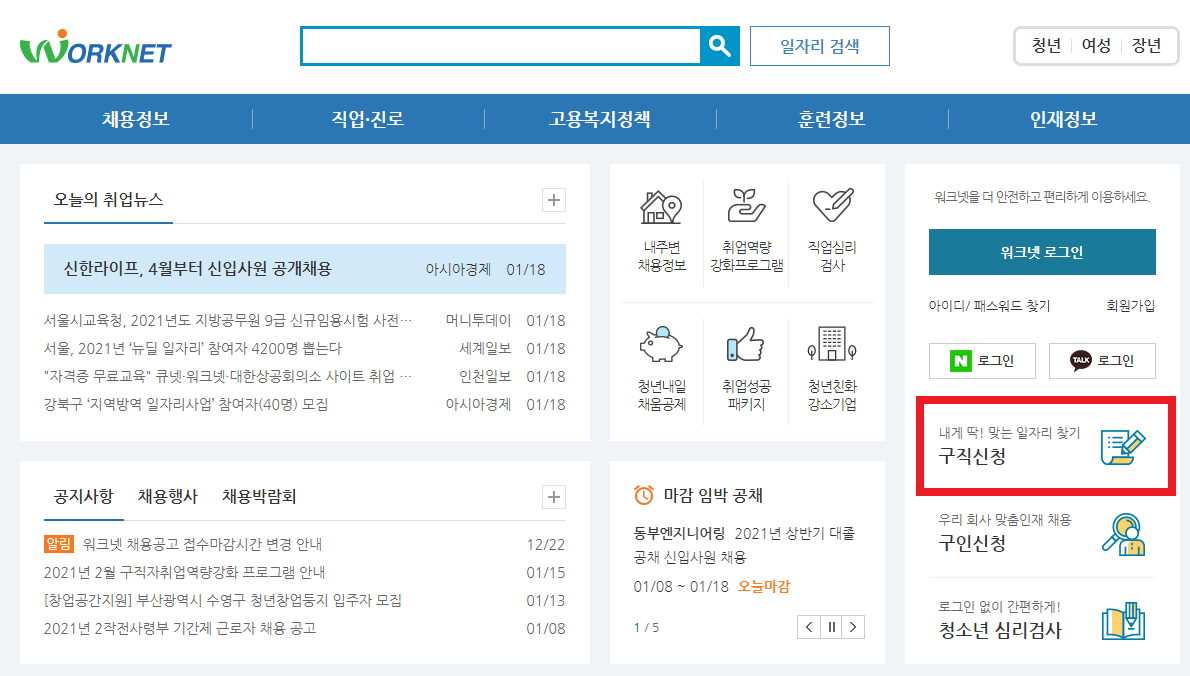 그냥 워크넷에 들어가서 구직신청을 하시면 끝입니다.
