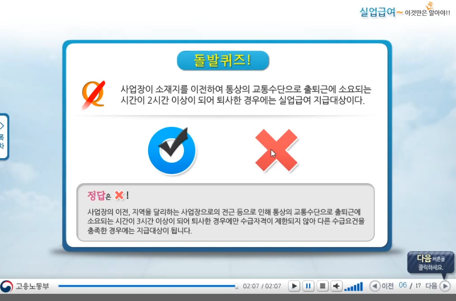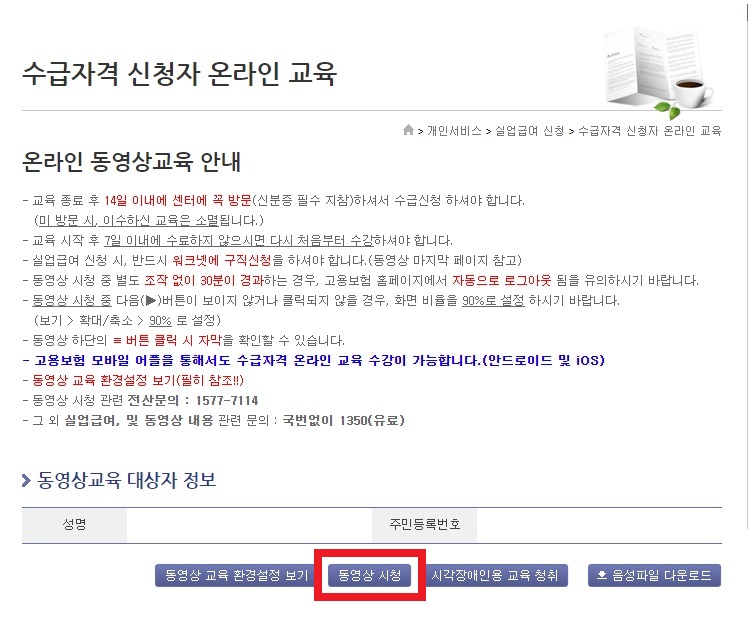 다음 실업급여 신청 단계인 목차 3(수급자격 온라인 교육 수강)으로 넘어가주시면 됩니다.
