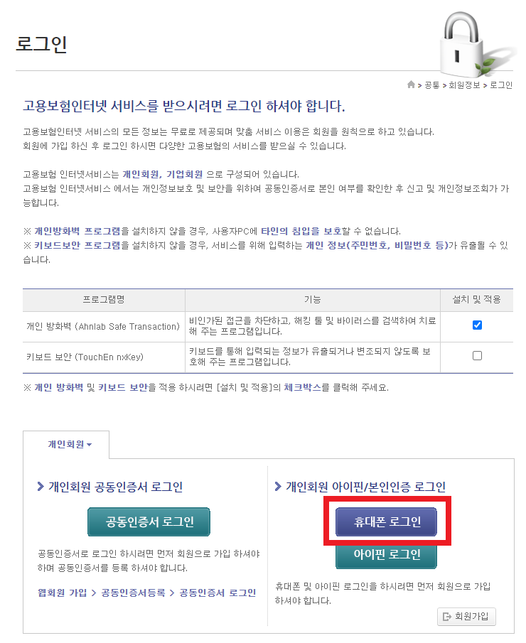 휴대폰 로그인이 제일 간편하니 휴대폰 로그인을 해주도록 합니다.