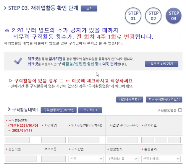 이제 재취업활동 확인 단계인데,