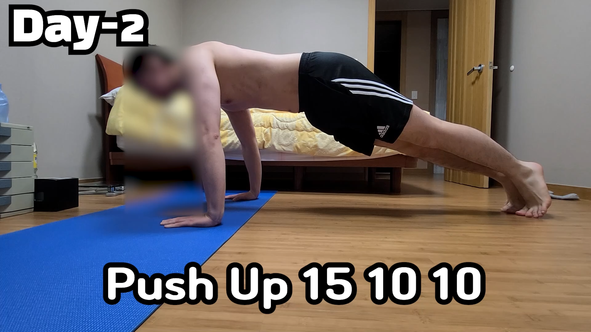 홈트의 특성상 무게를 들기 어렵기 때문에, 팔 굽혀 펴기는 그냥 평소에 하던 대로 진행을 했습니다.
