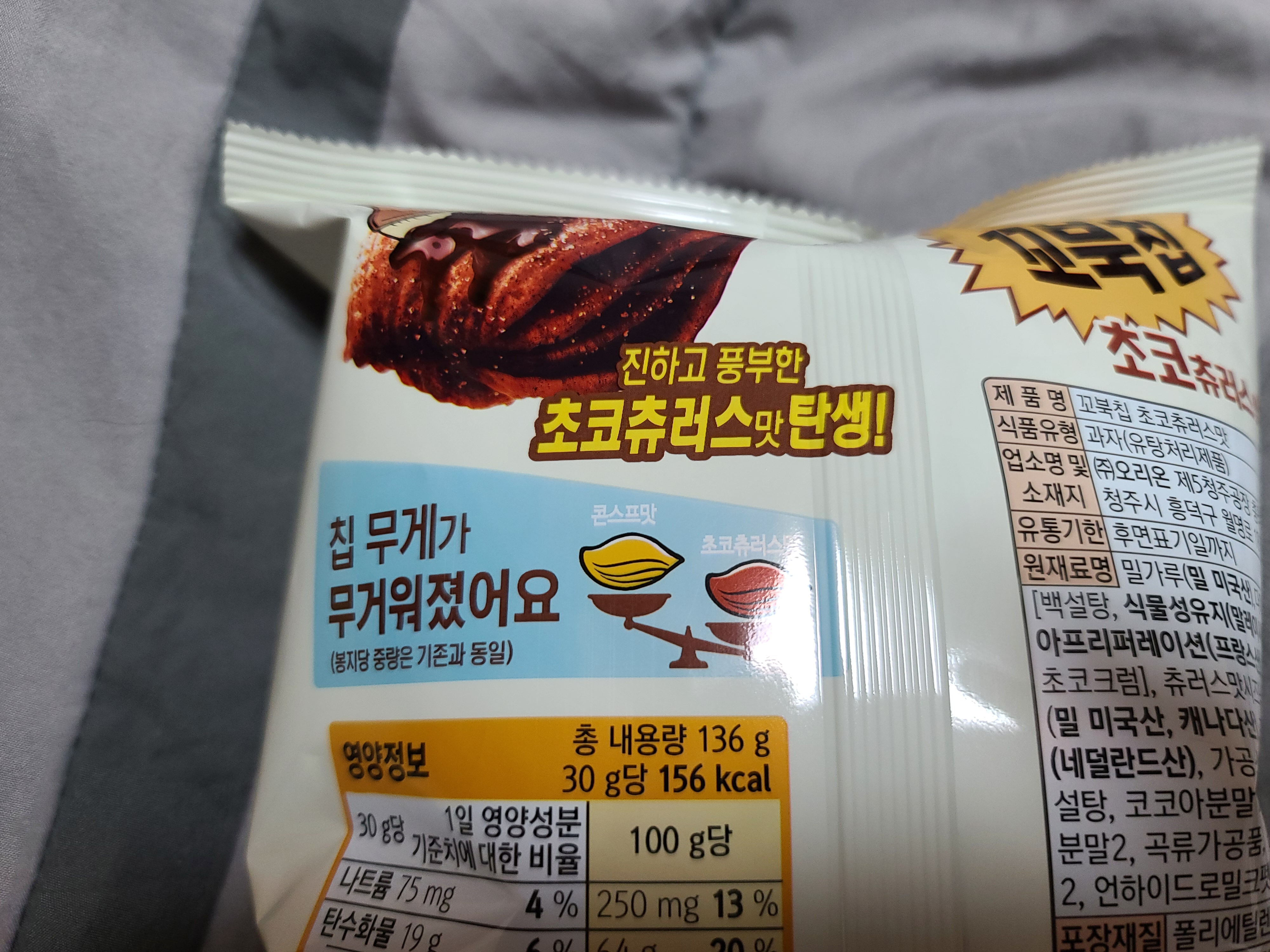 그냥 꼬북칩 초코맛으로 했으면 훨씬 더 맛있었을 것 같은데 왜 굳이 초코츄러스로 했는지 이해가 잘 안 됩니다.