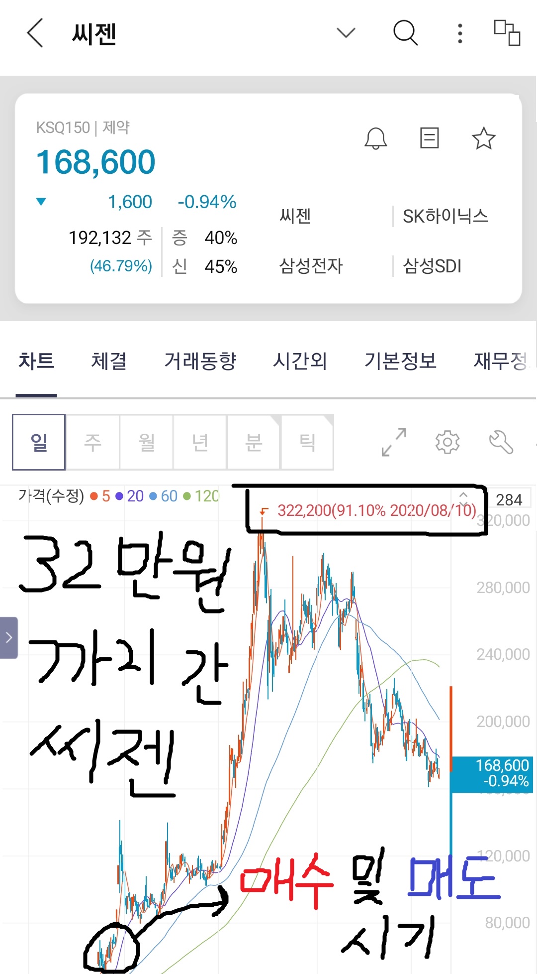 이 경험이 무슨 경험이었느냐 하면, 바로 씨젠 매수 및 매도 경험입니다.