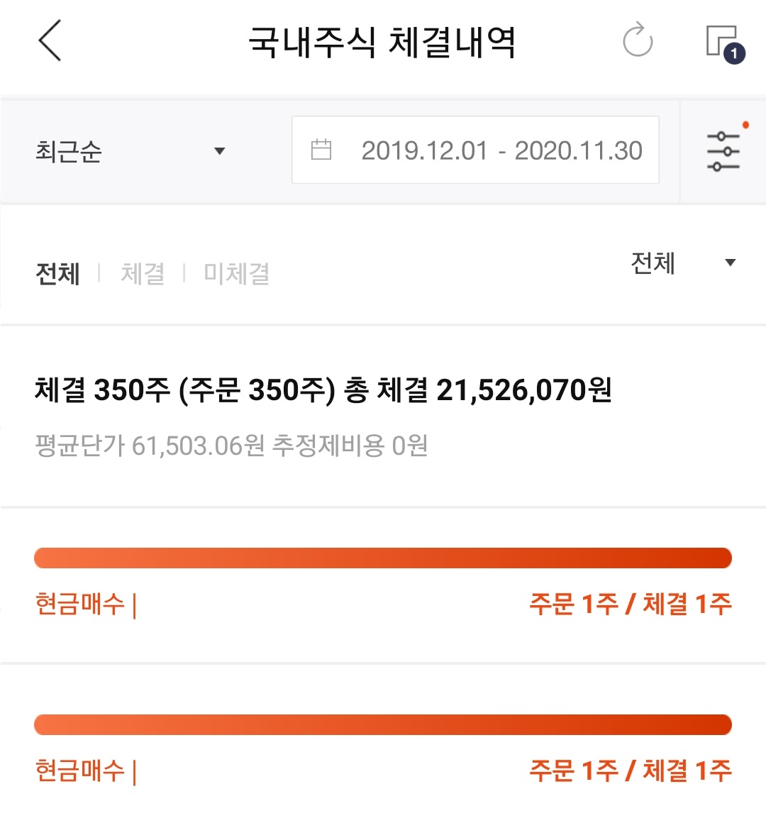 위의 국내 주식 체결내역을 보시면 아시겠지만,