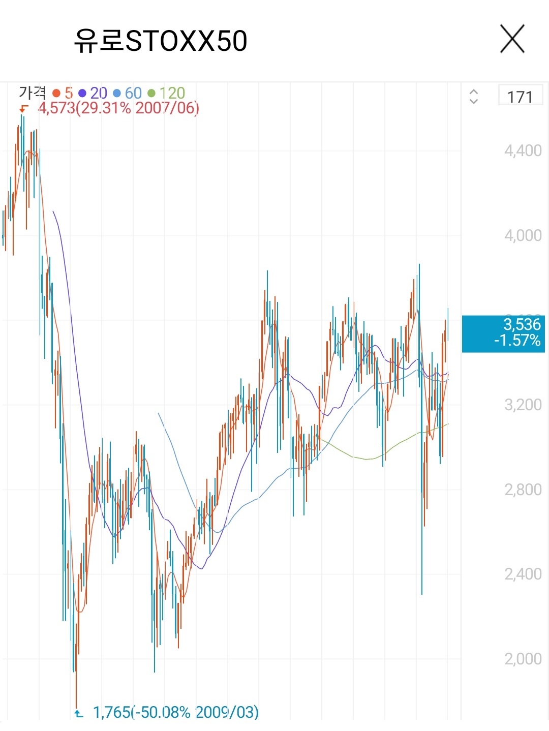 다른 나라들의 종합 주가지수 차트를 보시면 바로 이해가 되실 거라고 생각합니다.