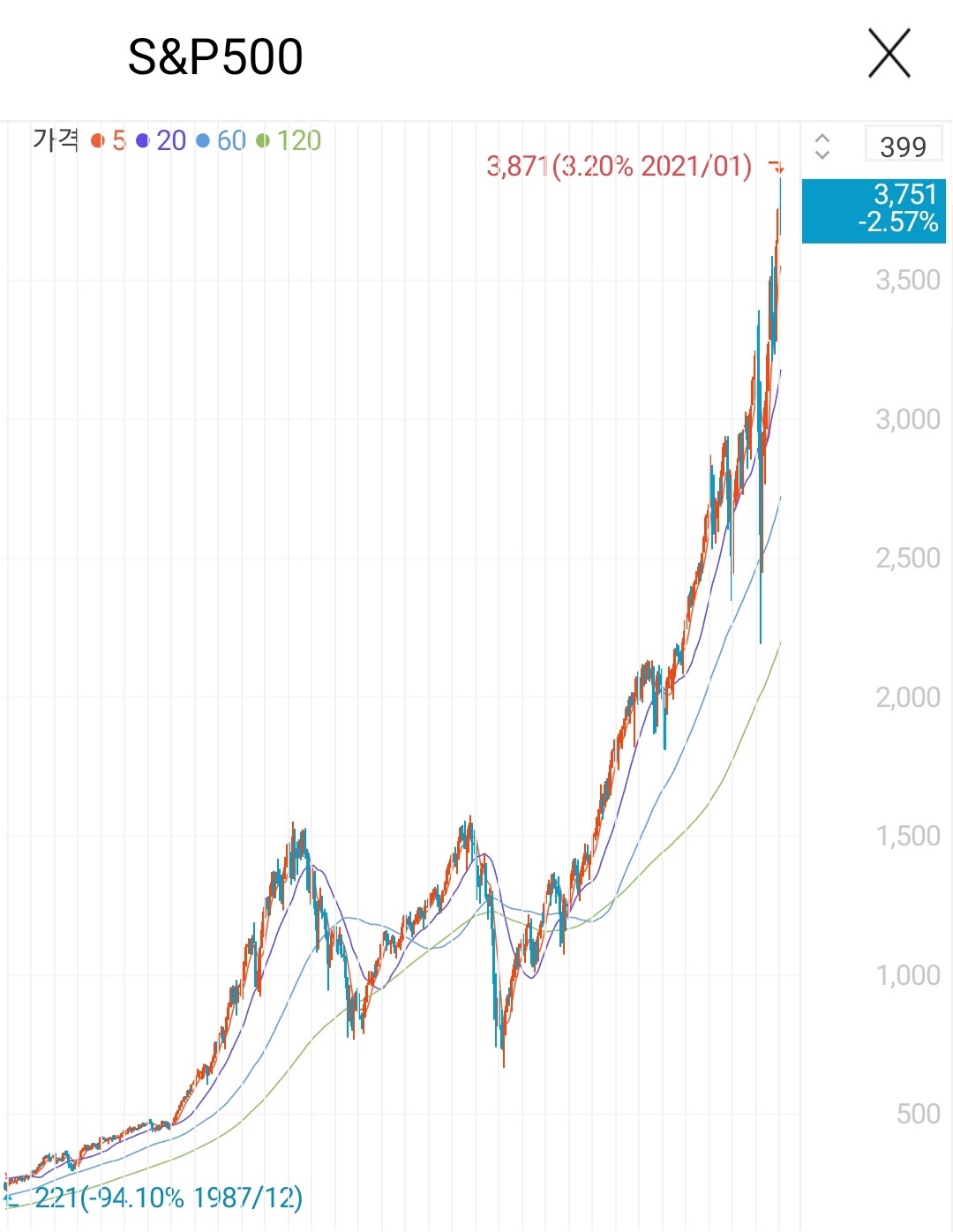 오히려 코로나 쇼크 때 공포에 질려서 보유하고 있던 주식을 다 팔아버리고 지금까지 타이밍만 재다가 주식을 사지 못하고 있었을 것이라고 생각합니다.