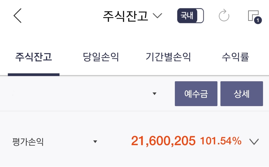 위에서 말씀드렸던 제 주식 잔고의 수익률과 제가 매수한 종목들을 공개해보도록 하겠습니다.