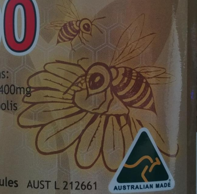 저렇게 '호주 헬시 케어 프로폴리스 2000' 앞에는 벌 그림이 그려져 있습니다. 대충 프로폴리스는 벌에 의해서 만들어지는 면역력 강화 제품이라고 아시면 될 것 같습니다. 물론 이건 전적으로 저의 뇌피셜입니다.