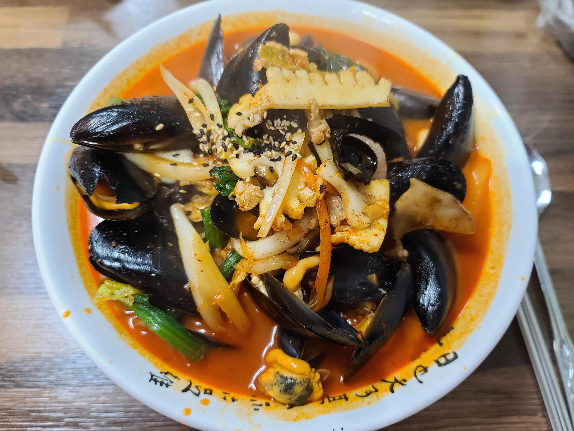 제가 홍합 살을 골라내느라 면을 신경 쓰지 못하고 있었는데, 홍합을 다 발라냈을 때쯤 면을 먹으니 살짝 불어있었습니다(얇은 면이었습니다).