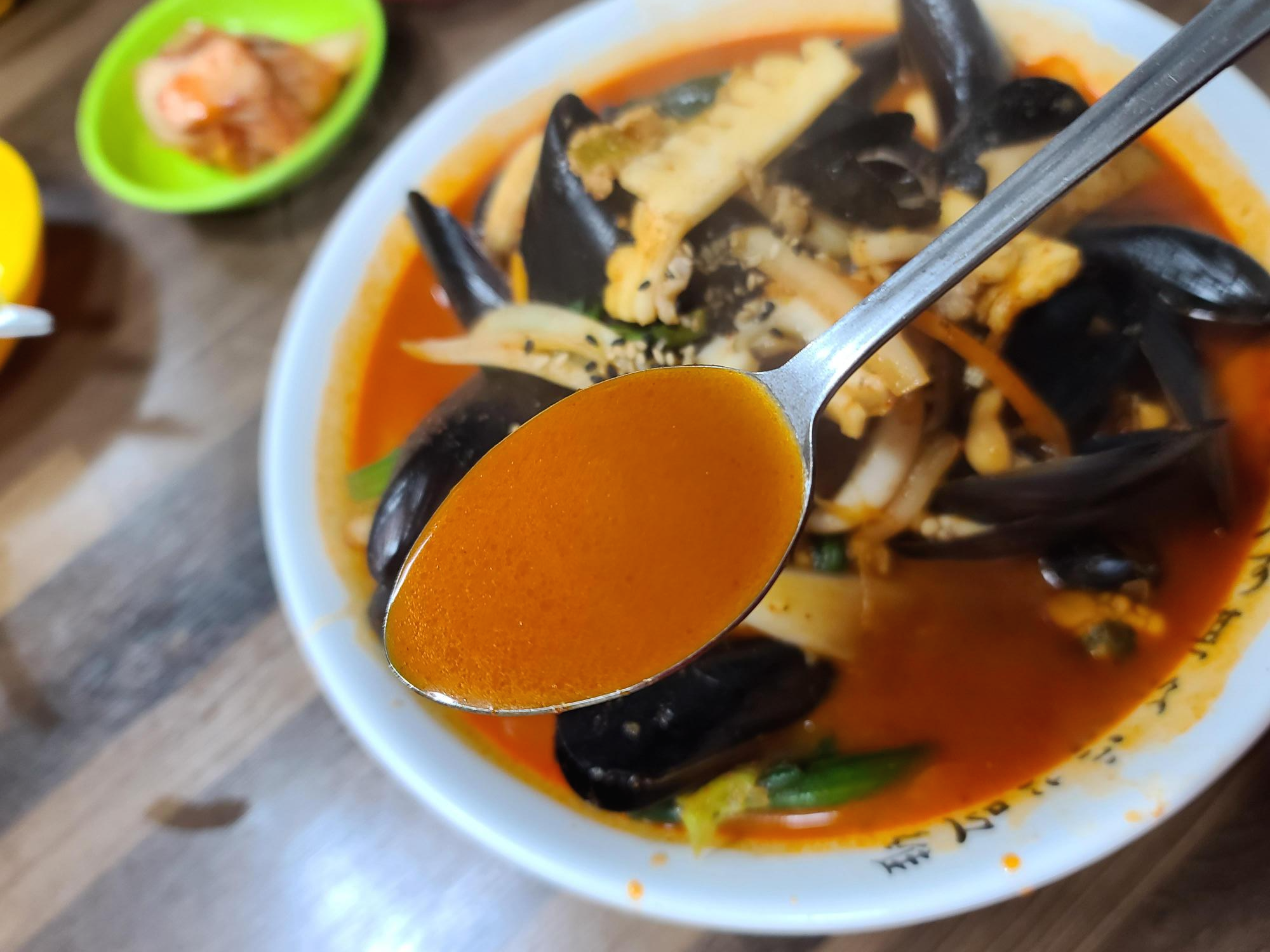 제가 홍합 살을 골라내느라 면을 신경 쓰지 못하고 있었는데, 홍합을 다 발라냈을 때쯤 면을 먹으니 살짝 불어있었습니다(얇은 면이었습니다).