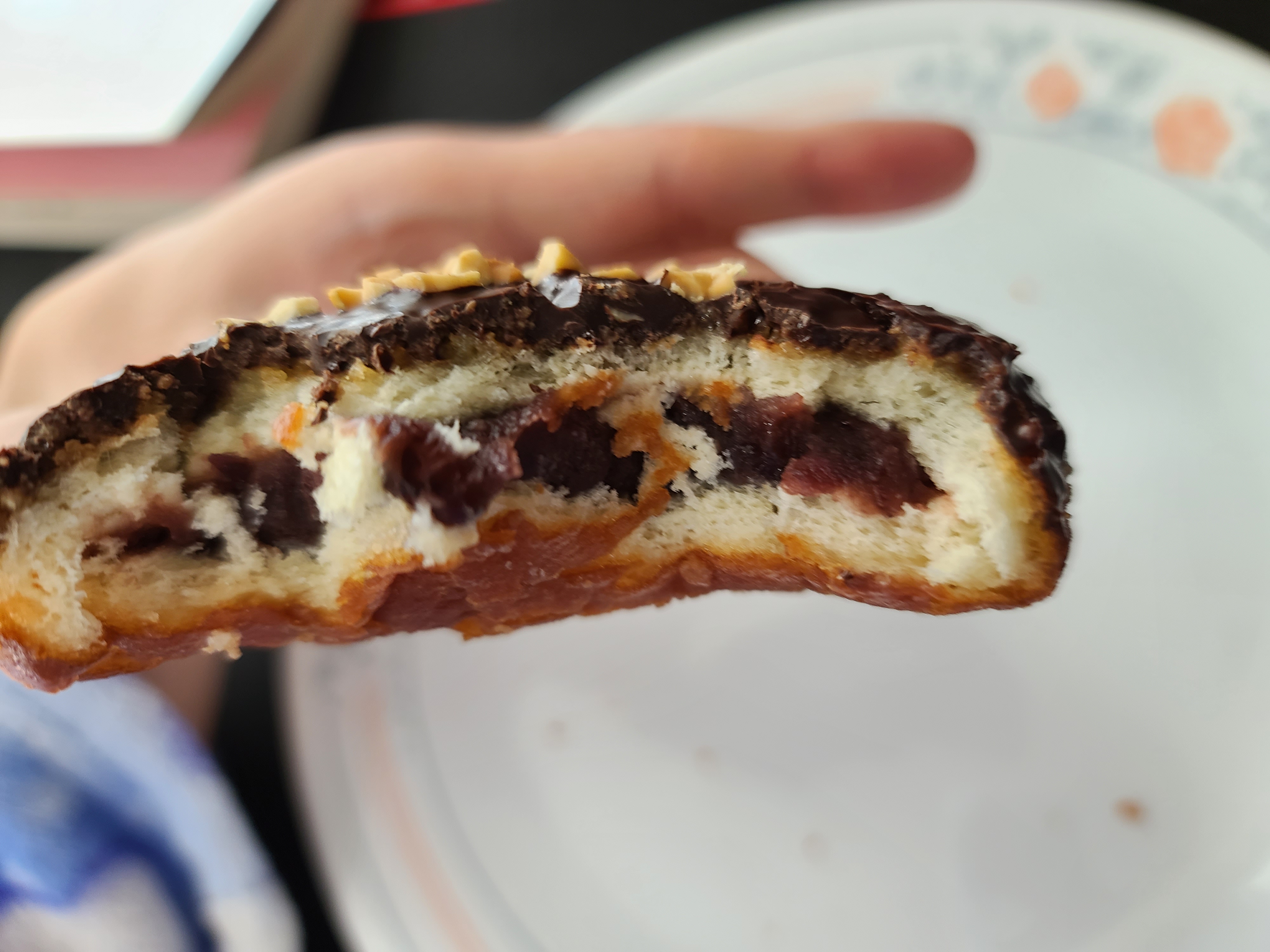 초코튀소의 안쪽에는 일반적인 팥앙금이 들어가 있습니다.