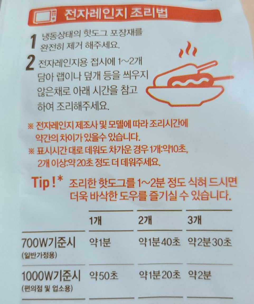 뒷면에는 조리방법, 핫도그 스펙(?) 등이 나와있습니다.