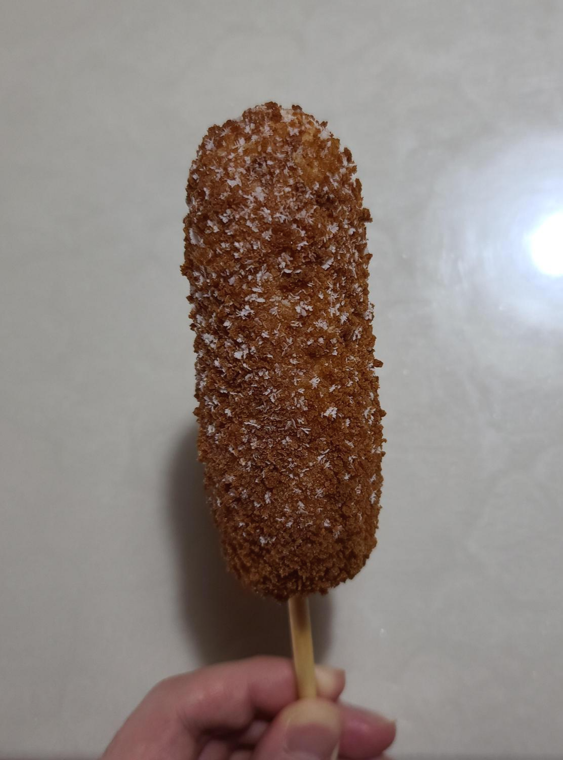 (참고로 흰색 가루들이 핫도그에 붙어있다는 것을 알 수 있는데, 이건 설탕이 아니라 그냥 얼음 알갱이입니다.)