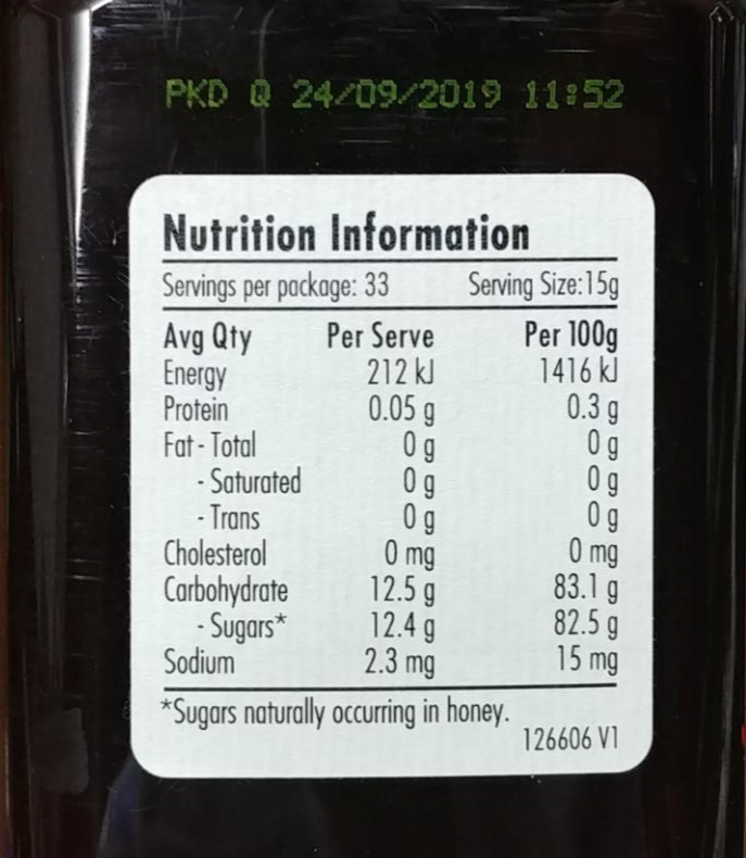 그리고 제품 옆면에 영어로 뭐라 뭐라 쓰여있는데, 그냥 호주 마누카 꿀 몸에 킹 좋으니 많이 사서 먹으라는 말이므로 생략하도록 하겠습니다. 그래도 뭔가 허전하니 영양정보만 짚어보고 가겠습니다.