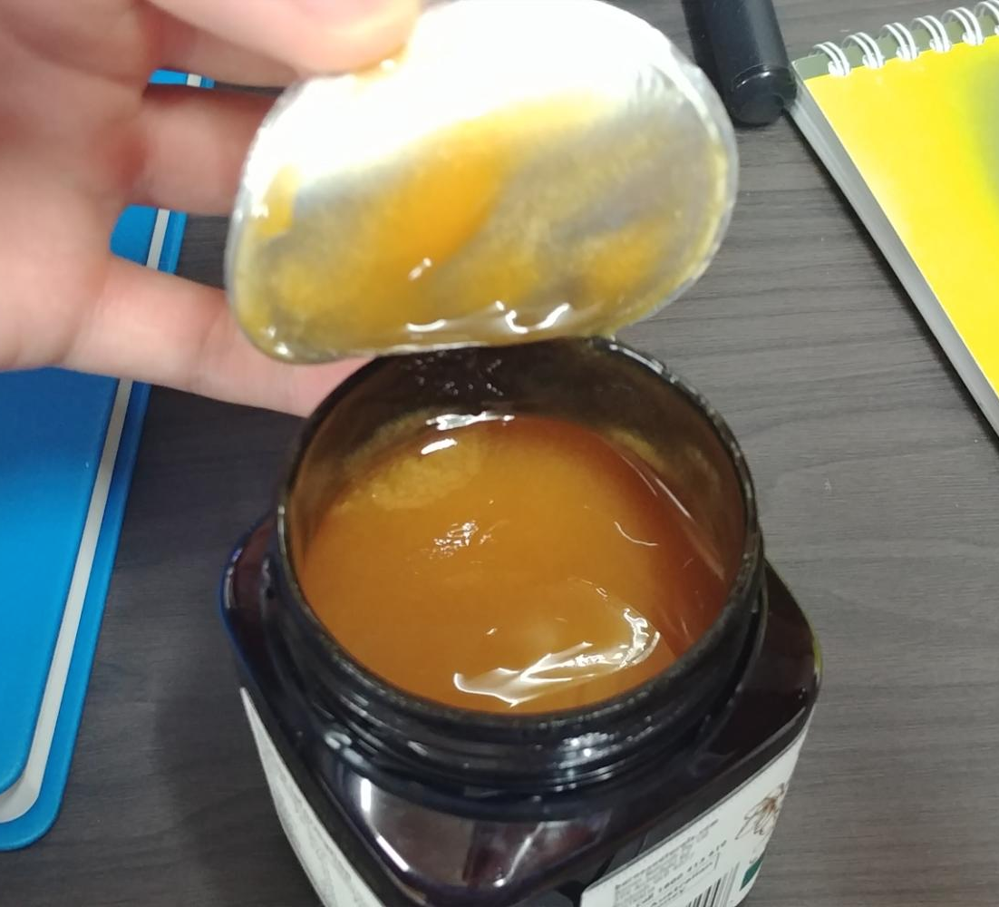 호주 마누카 꿀의 내부 모습은 요렇게 생겼습니다. 그냥 살짝 진하고 농도가 높은 꿀 같습니다. 제가 다른 블로그들과 판매처 홈페이지를 돌아다니면서 살펴본 결과, 위에서 말씀드린 MGO 같은 수치가 높을수록 색깔이 밝아지는 것 같습니다. 즉, 수치가 낯으면 검은빛이 돌고, 수치가 높으면 황금빛이 돈다는 얘기입니다.