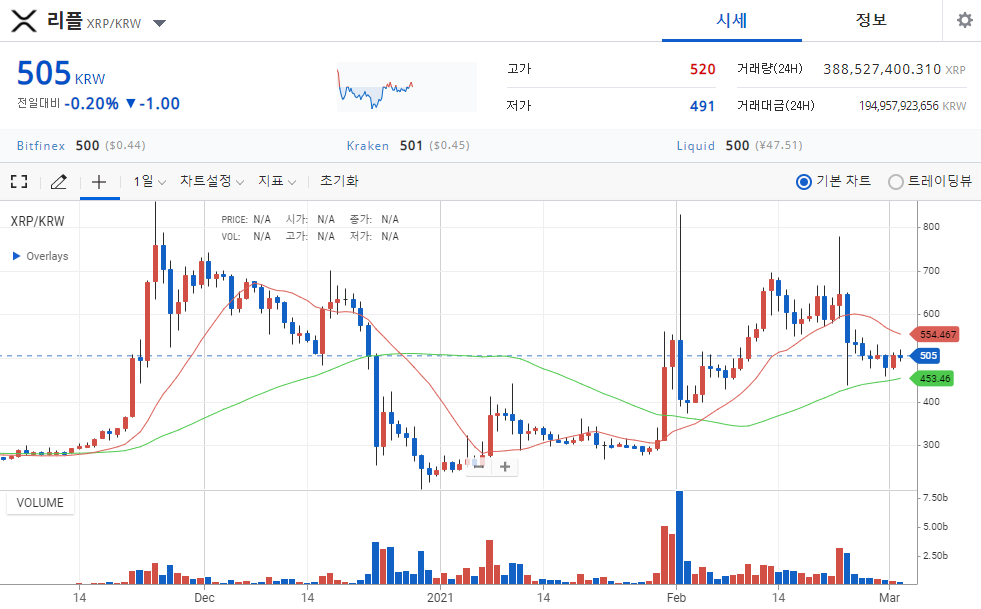 리플 시세가 불과 며칠 전만 해도 800원까지 올라갔던 때가 있었습니다.