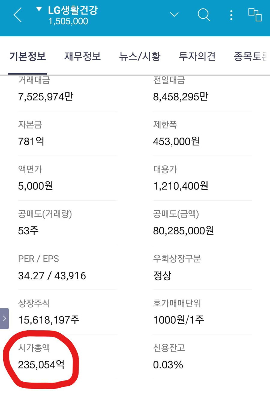 우리나라 시가총액 16위 기업인 LG생활건강과 맞먹는 규모라고 보시면 됩니다.