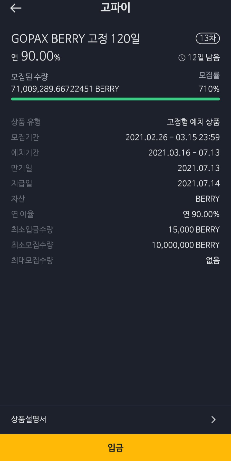 그런데 위의 상품은 연 수익률이 무려 90%나 되네요..