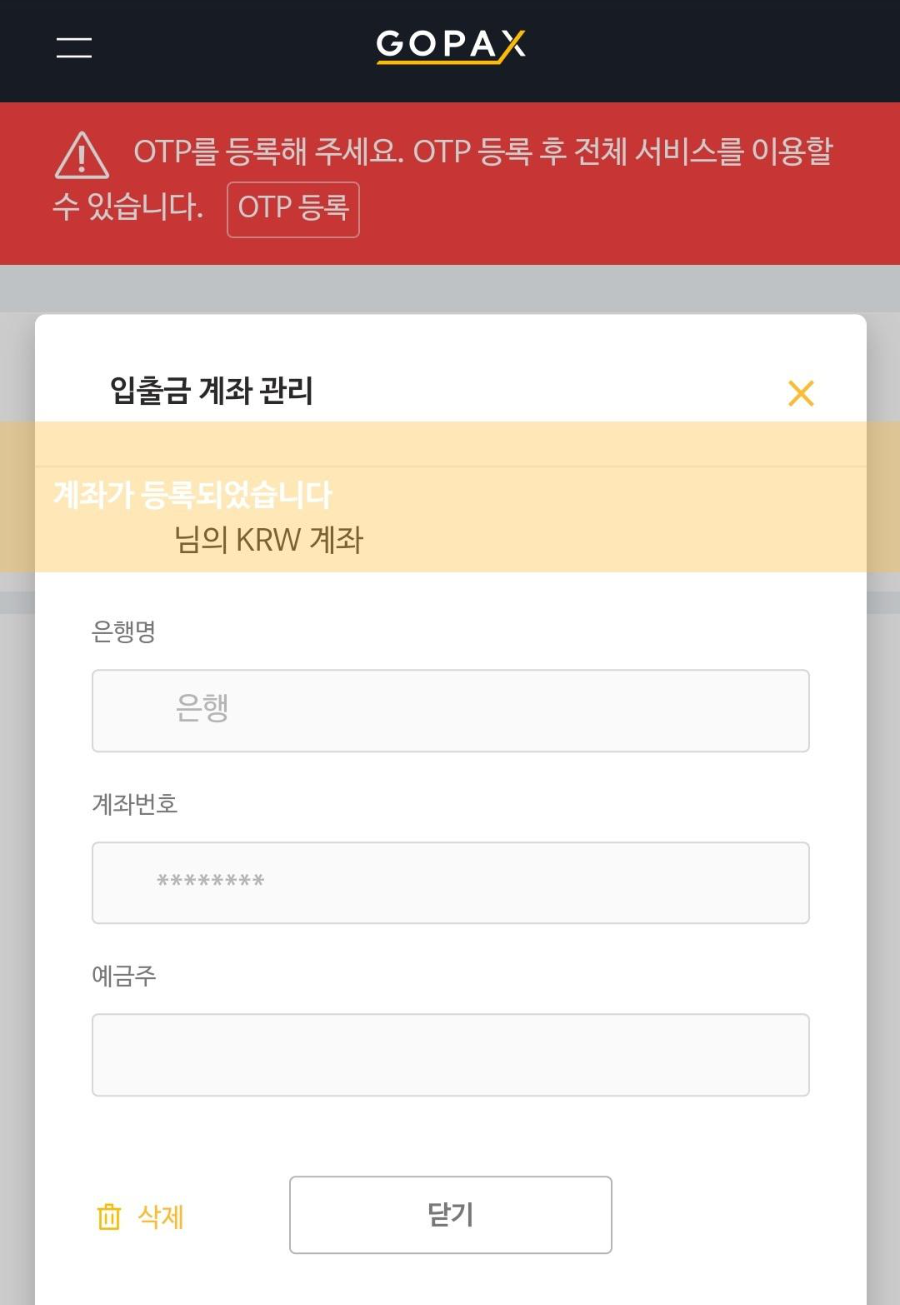 2. 고팍스 거래소 어플에서 계좌 등록하기
