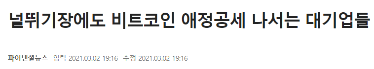 먼저, 비트코인을 들고 계신 여러분들의 가슴이 웅장 해지는 기사를 몇 가지 보여드리도록 하겠습니다.