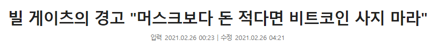 그러니 빌 게이츠가 머스크보다 돈 적으면 비트코인 사지 말라고 한 것입니다.