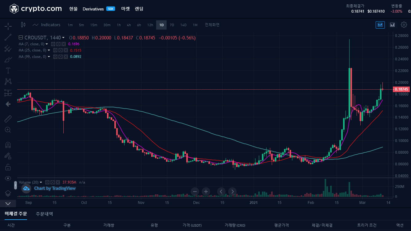 크립토닷컴체인 시세 올라가는 소리가 들리는 것 같습니다.