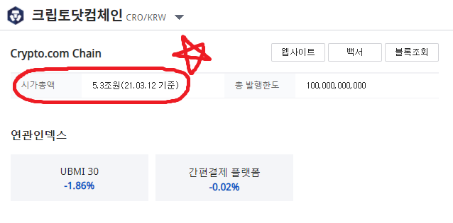 왜냐하면 크립토닷컴체인은 시가총액이 무려 5.3조 인 메이저 코인에 해당되고,