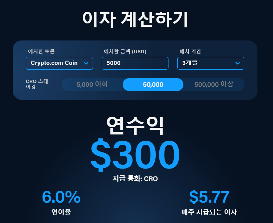 크립토닷컴체인 예금은 무려 연이율이 6%나 됩니다.