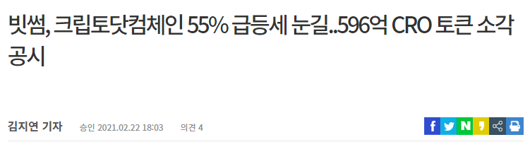 크립토닷컴체인 토큰 소각에 관련된 공시가 떴기 때문입니다.