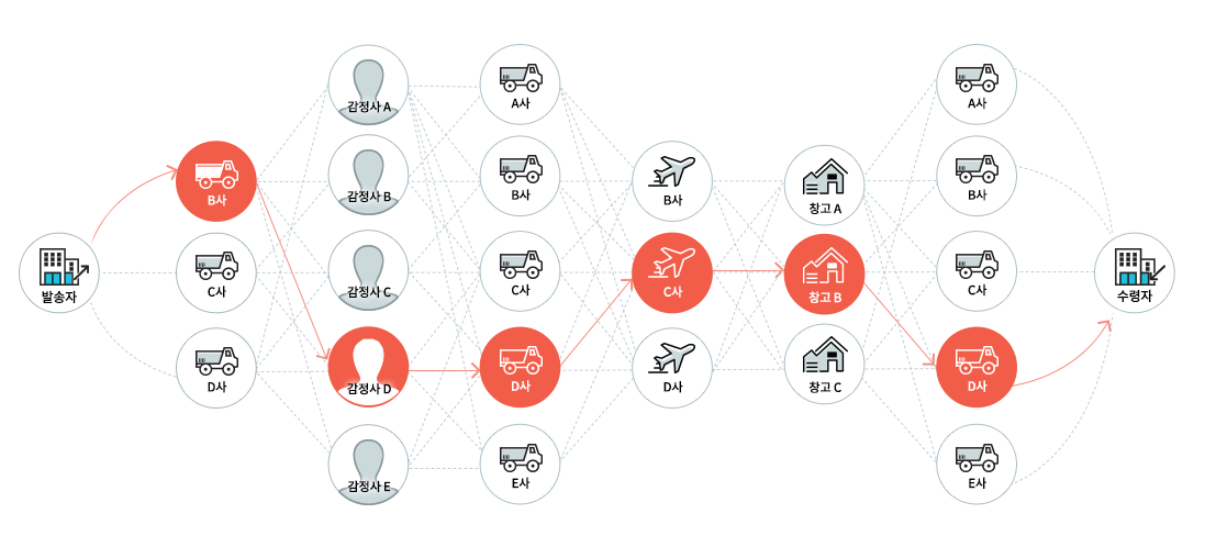 블록체인 기반의 디카르고 프로젝트에 참여하는 기업들은 서로 강한 신뢰관계가 형성됩니다.