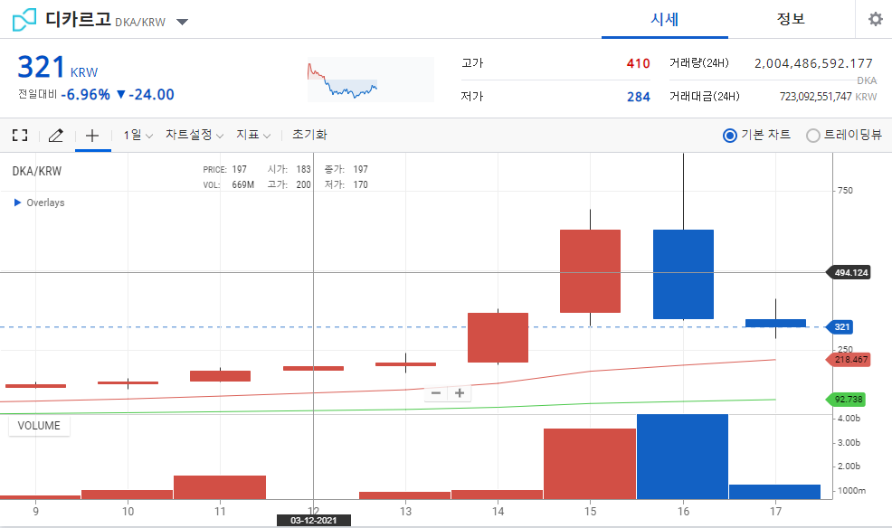 어제만 해도 디카르고가 870원까지 갔었는데, 지금 보니 디카르고 시세가.. 321원입니다..