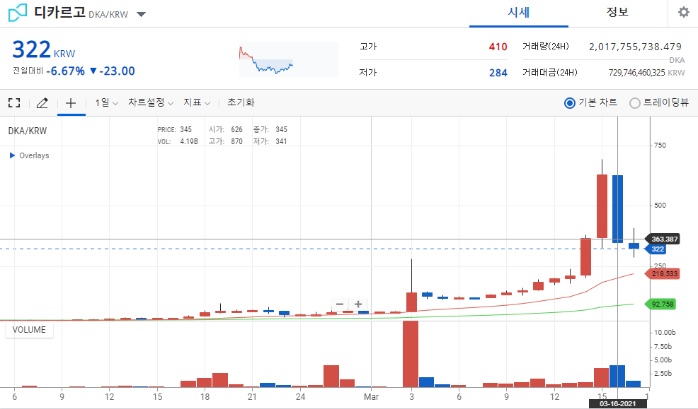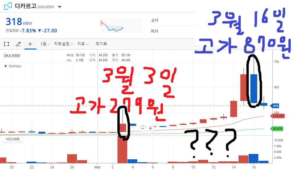 하지만, 2021년 03월 16일에 갑자기 디카르고 시세가 또 다시 급등한 것은 도대체 왜일까요??