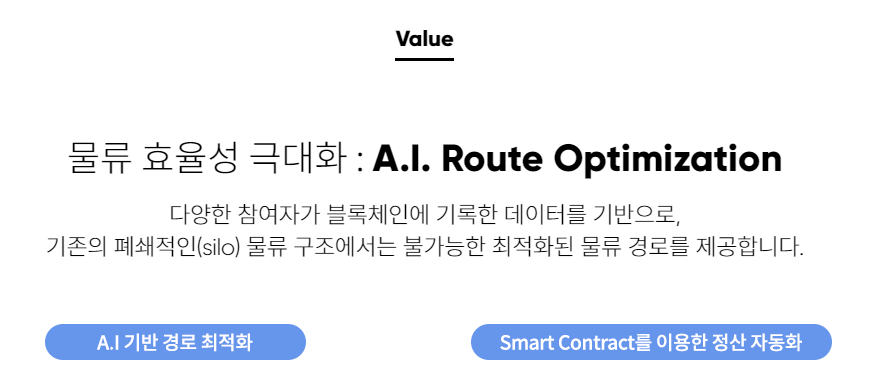 "모든 물류활동을 수행하는데 들어가는 비용을 프로토콜 경제 기반으로 해결하려는 블록체인 기반의 프로젝트"
