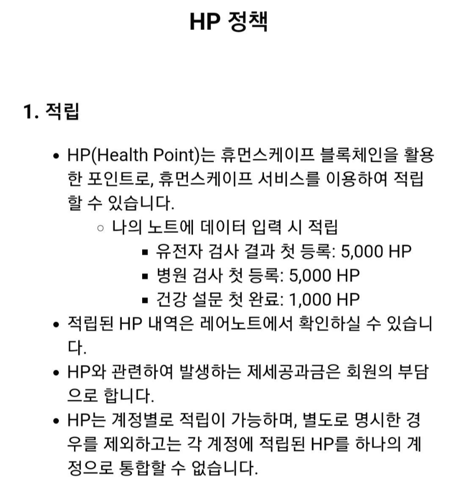 위에서 설명드린 레어노트를 활용하여 희귀 난치성 질병에 대한 데이터를 제공하면 HP라는 포인트를 주는데,
