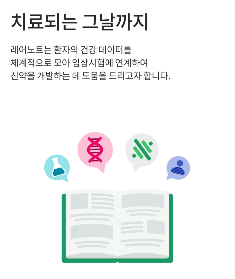 휴먼스케이프는 이 레어노트라는 플랫폼을 통해서 질병에 관한 데이터들을 모으고 가공합니다.