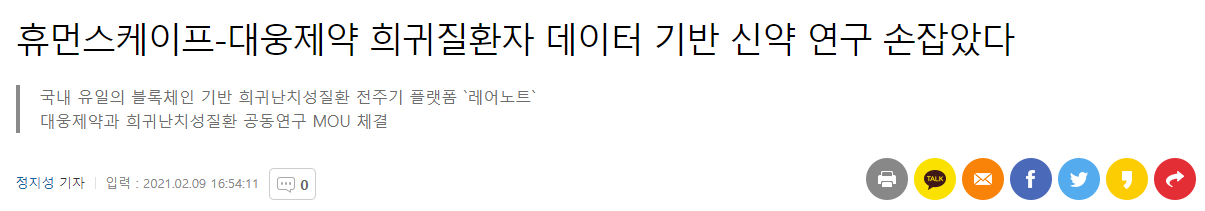 앞서 휴먼스케이프가 블록체인 기술을 바탕으로 질병의 데이터를 안전하게 모으고 가공하는 서비스를 제공한다고 말씀을 드렸었습니다.