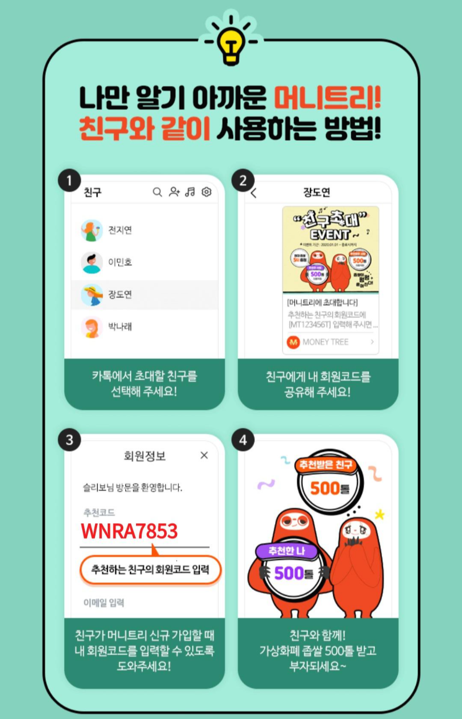 추천인 코드 WNRA7853을 입력하시고 머니트리 회원가입을 하시면,