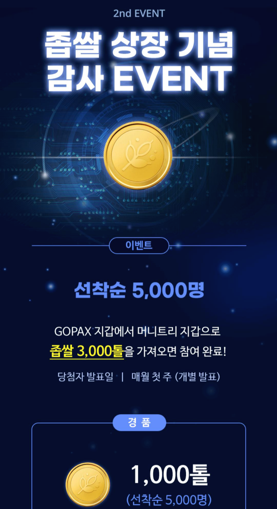 즉, 머니트리측에서 좁쌀코인을 홍보하기 위해 이러한 이벤트를 하는 것이라고 이해하시면 됩니다.