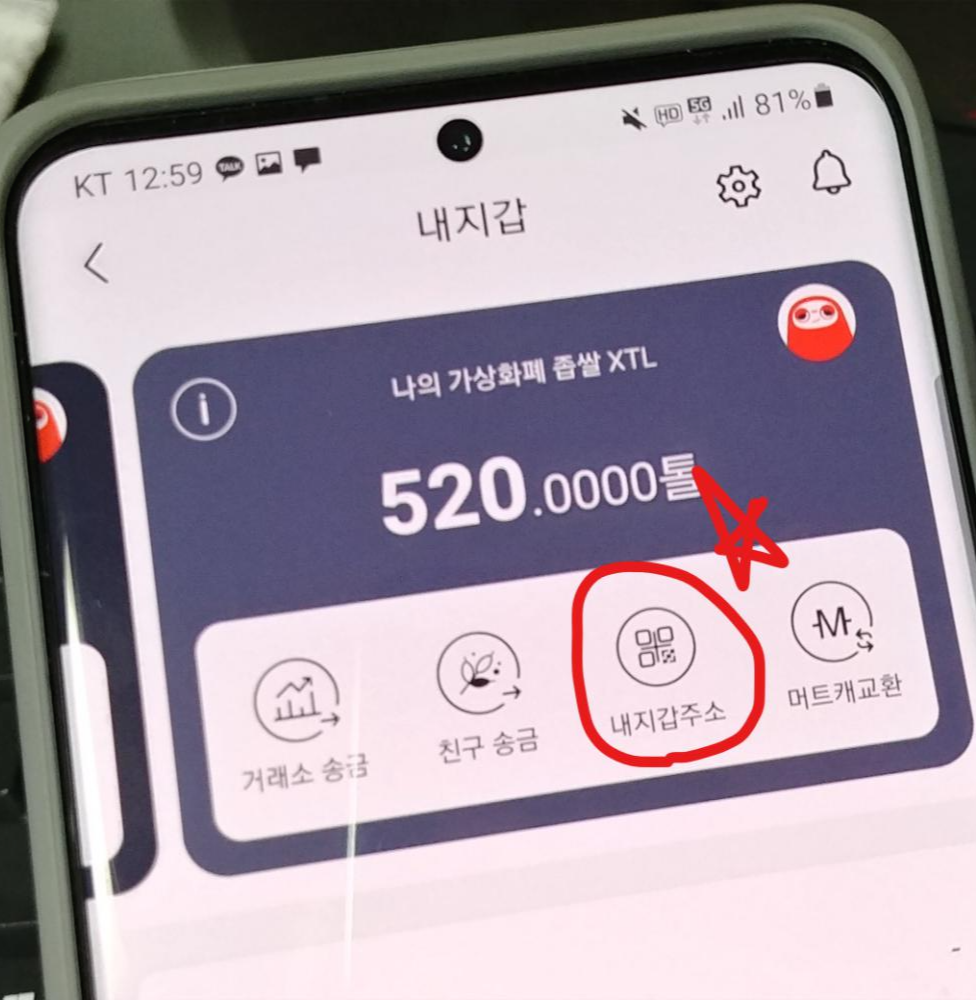 머니트리의 내 지갑주소를 확인하신 뒤,