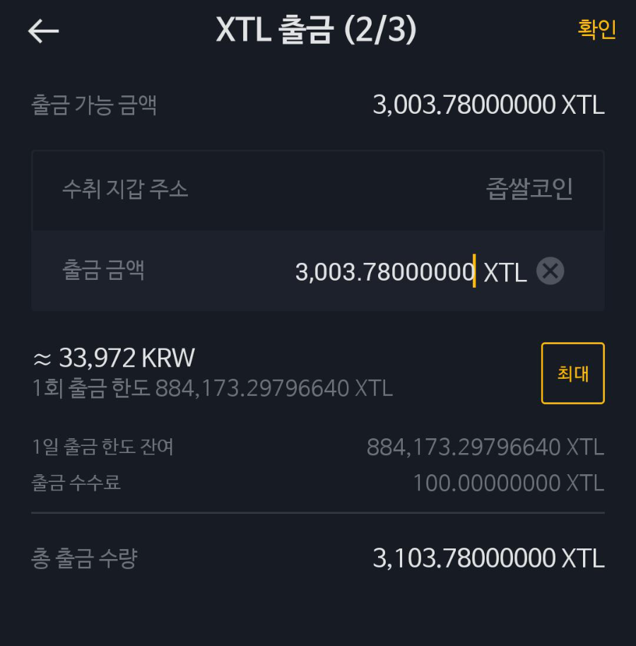(위에는 3,000개로 되어있지만, 출금 수수료 100좁쌀코인을 고려해서 3,100개를 매수하셔야 합니다.)