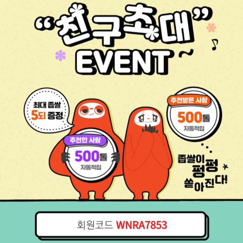 그리고 추천인 코드를 입력해서 회원가입을 하는 여러분들에게도 500좁쌀코인이 지급되는 이벤트이기 때문입니다.