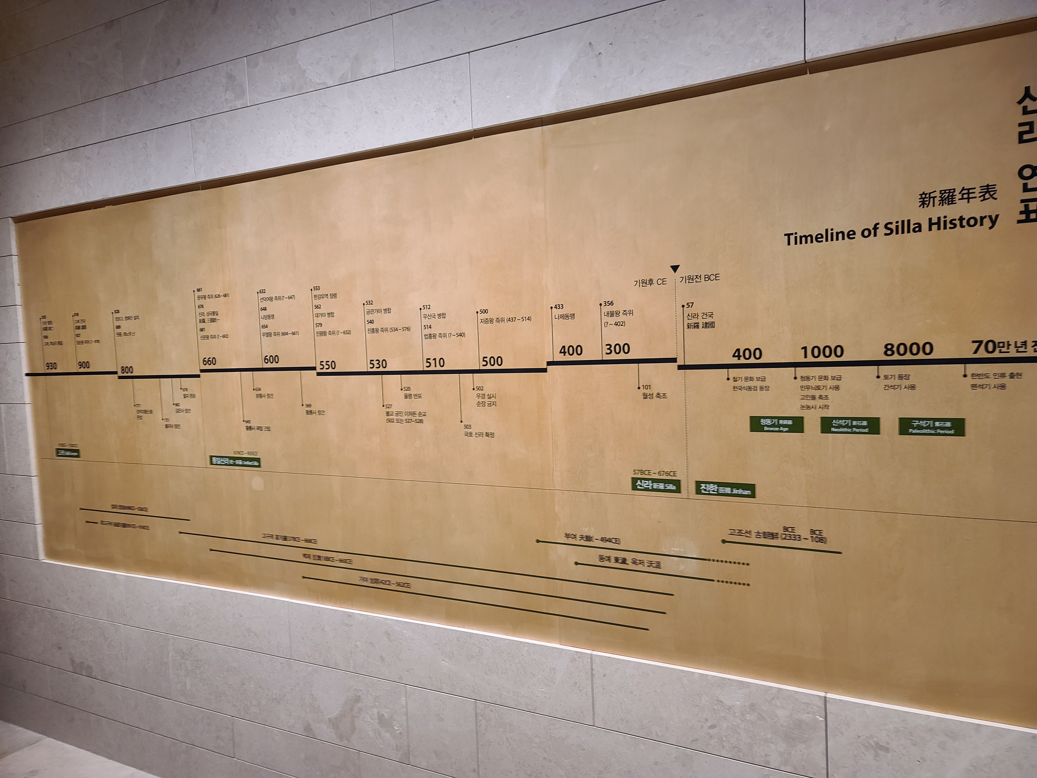 국립경주박물관 신라역사관 1실로 들어가면, 가장 먼저 신라 연표가 나옵니다.