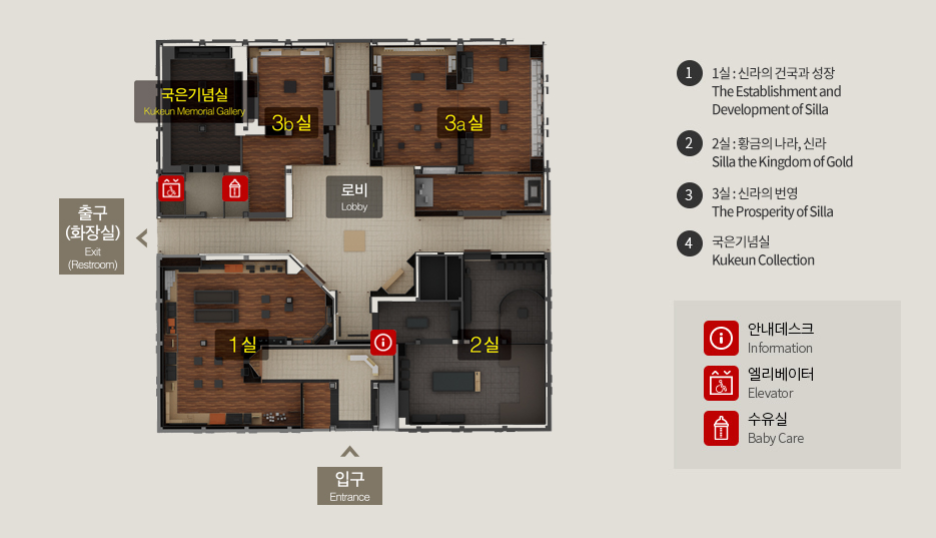 국립경주박물관의 신라역사관의 구조는 위와 같습니다.