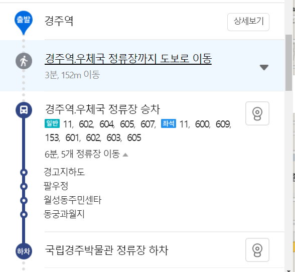 위의 사진에 나오는 버스를 타고 약 9분을 이동하시면 국립경주박물관에 도착할 수 있습니다.