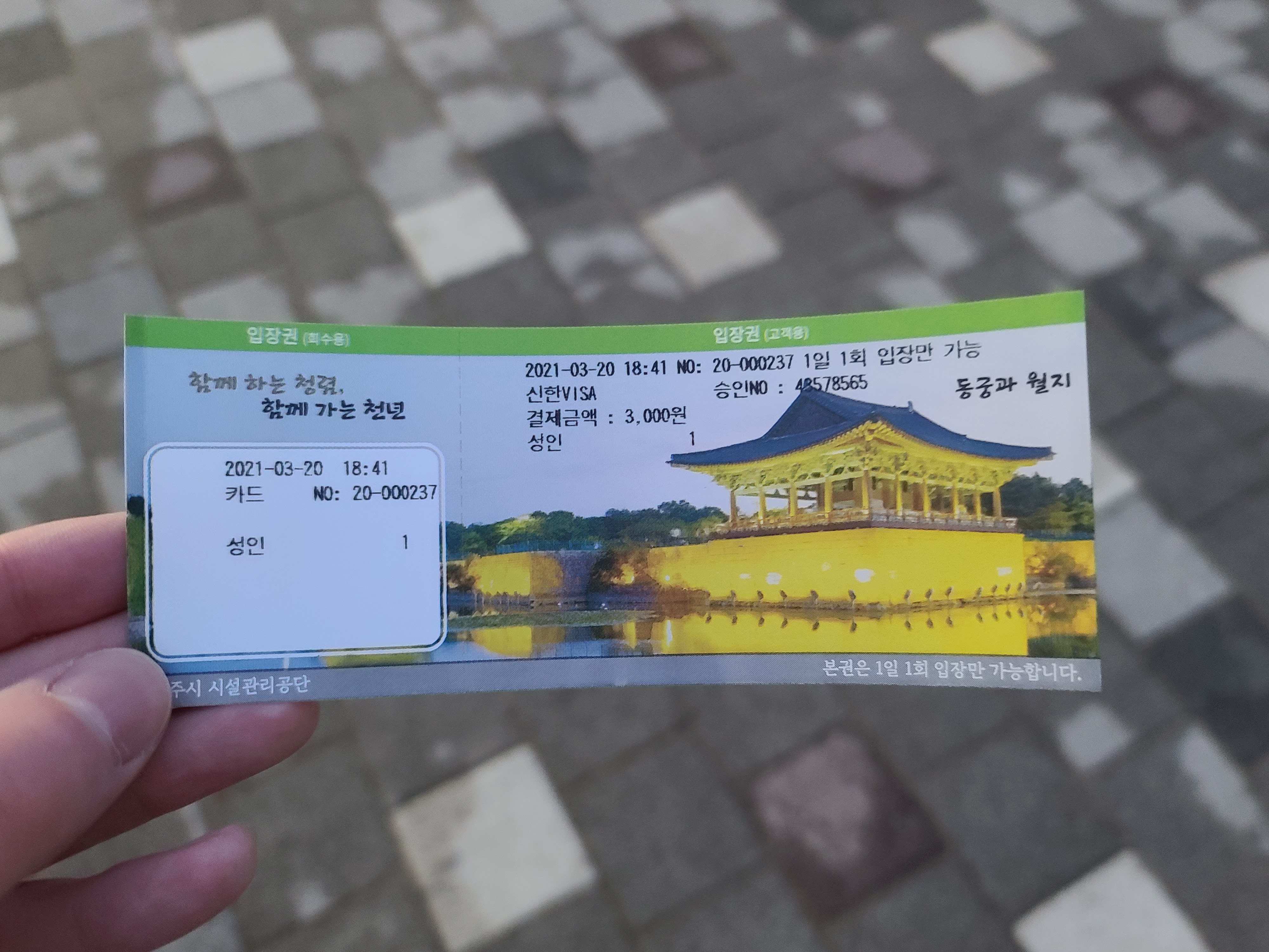 경주 동궁과 월지(안압지) 입장권을 구매했습니다.