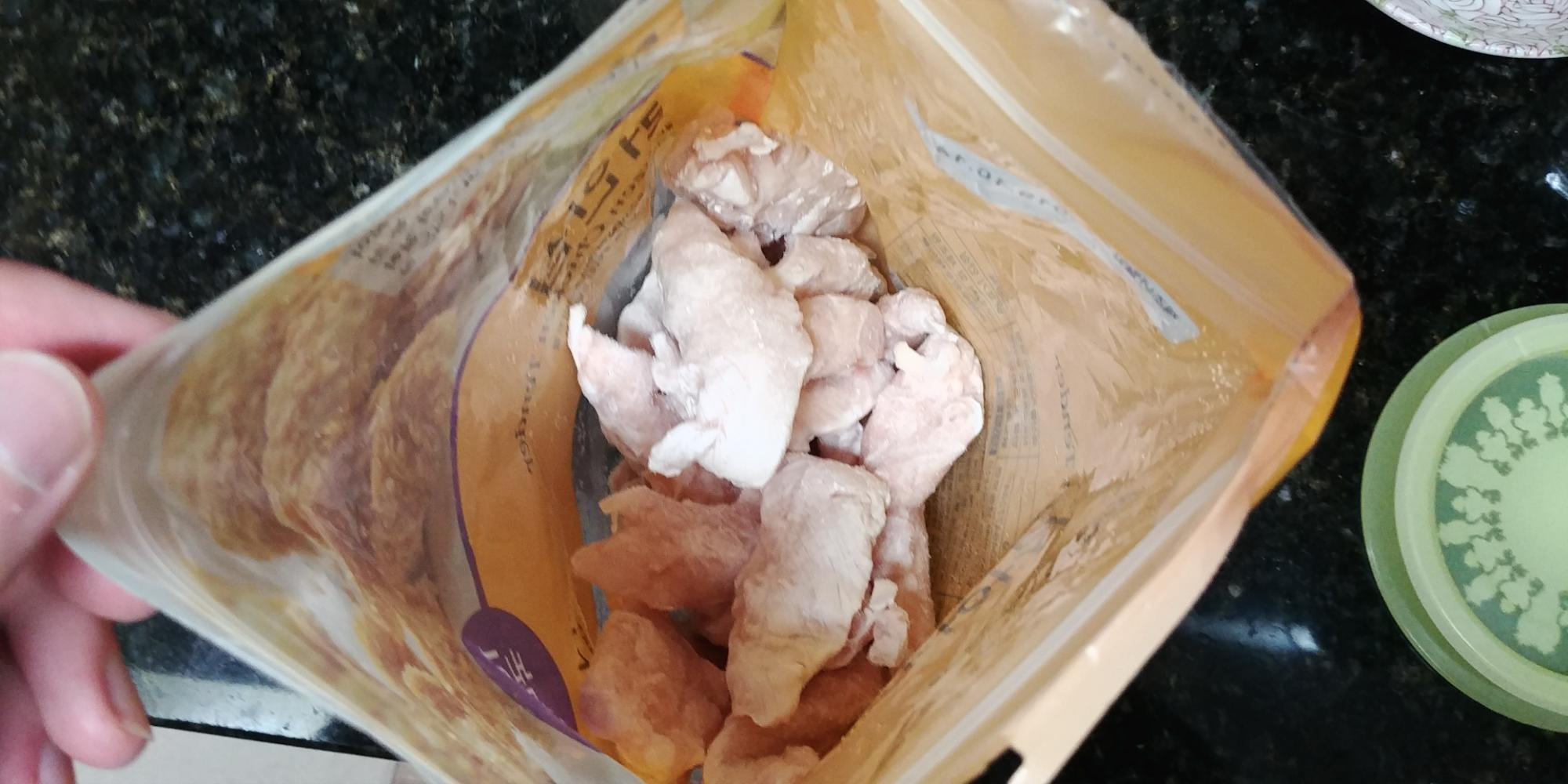 원래는 저렇게 텅텅 비어있지 않고 꽉 차있습니다. 새 제품을 사려고 했지만, 엄마가 냉동실 자리 차지한다고 그만 사라고 하셔서 집에 남아있는 노브랜드 냉동 닭안심살로 리뷰하겠습니다.